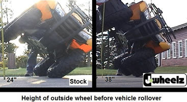 Add stability for your ATV on side-slopes and rollover situations. As you can see in the comparison picture below, they substantially increase the height of the ATVs tipping point which makes them considerably more stable in many situations.