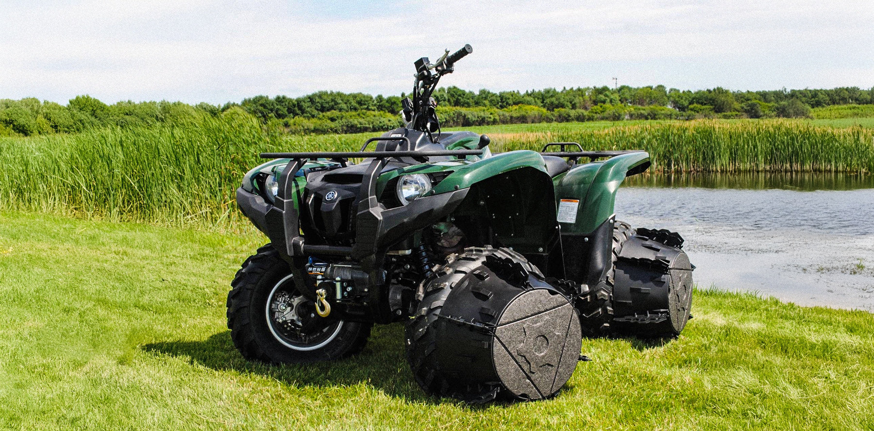 J-wheelz are an attachment for ATVs, UTVs and 6-Wheel Vehicles that add traction and flotation to a machine. They simply bolt on to the existing wheel, widening it with a unique shape that allows it to handle the deepest mud without affecting the drivability of the vehicle when on firm ground. This allows the rider to maintain full steering and speed capabilities of the machine as well as extends the life of J-wheelz by keeping them from wearing on the pavement.